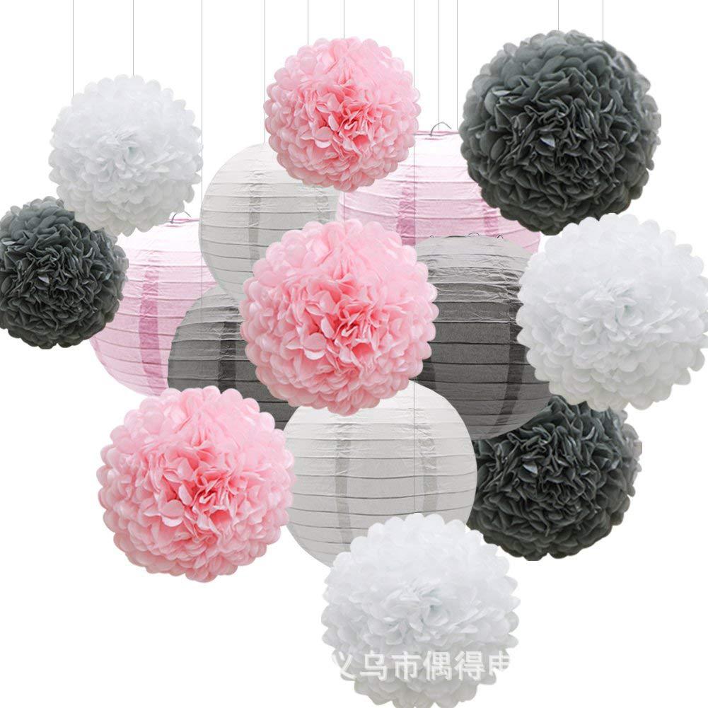 Set rosa y gris (bola de flor de papel + linterna de papel):