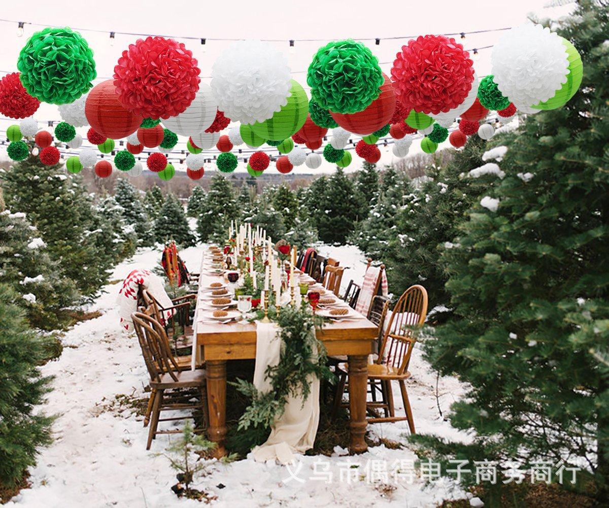 Bola de flor de papel: 2 blancas de 10 pulgadas + 2 rojas de 10 pulgadas + 2 verde oscuro de 10 pulgadas + 1 blanca de 8 pulgadas + 1 roja de 8 pulgadas + 1 verde oscuro de 8 pulgadas