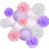 Bola de flor de papel: 2 blancas de 10 pulgadas + 2 rosa claro de 10 pulgadas + 2 morado claro de 10 pulgadas + 1 blanca de 8 pulgadas + 1 rosa claro de 8 pulgadas + 1 morado claro de 8 pulgadas