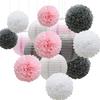 Bola de flores de papel: 2 blancas de 10 pulgadas + 2 rosa claro de 10 pulgadas + 2 gris claro de 10 pulgadas + 1 blanca de 8 pulgadas + 1 rosa claro de 8 pulgadas + 1 gris claro de 8 pulgadas