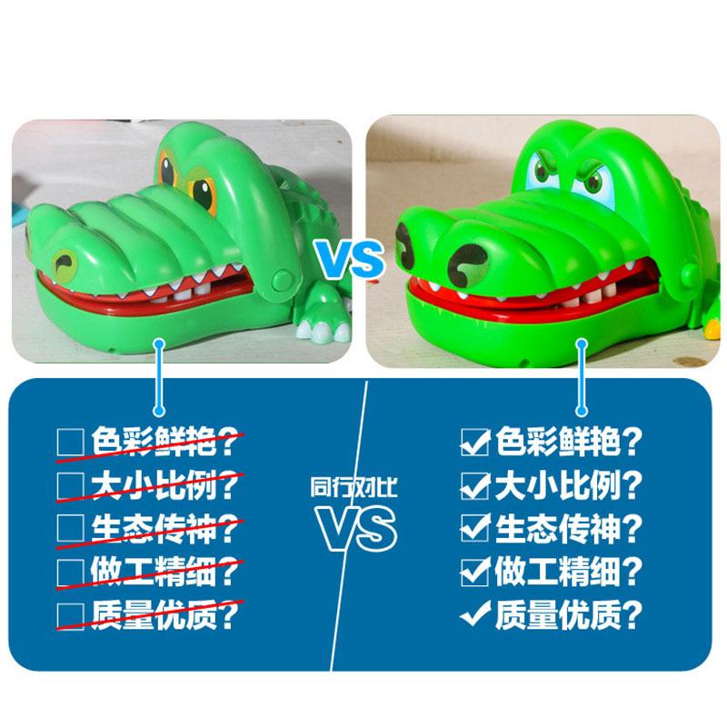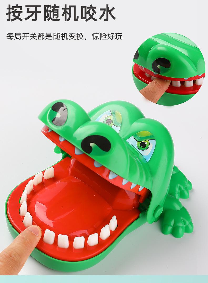 En este juego aleatorio, los participantes rodean al cocodrilo y, por turnos, eligen quién empieza. Cada uno debe presionar los dientes del cocodrilo. Que el cocodrilo los muerda o no depende del destino. La posición de los dientes cambiará aleatoriamente cada vez, lo cual es ideal para que padres e hijos jueguen juntos. Los amigos con problemas cardíacos deberían tener más cuidado al jugar y estar mentalmente preparados para evitar que el cocodrilo los asuste.