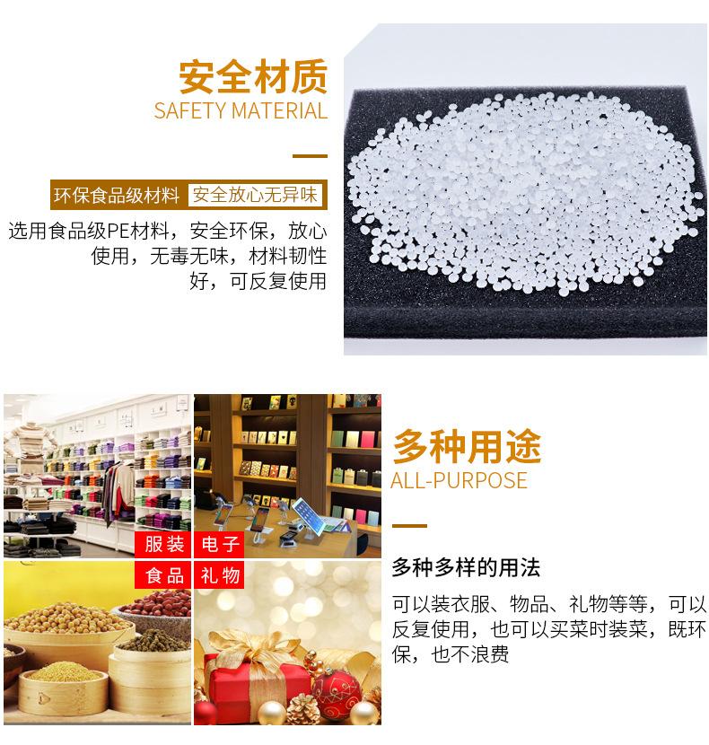 Bolsas de embalaje de plástico para diversas industrias, como herramientas de hardware, productos electrónicos, regalos, ropa acolchada de algodón de otoño e invierno, suéteres, bufandas, guantes, ropa interior, etc. Los clientes de todo el país pueden realizar pedidos y compras.