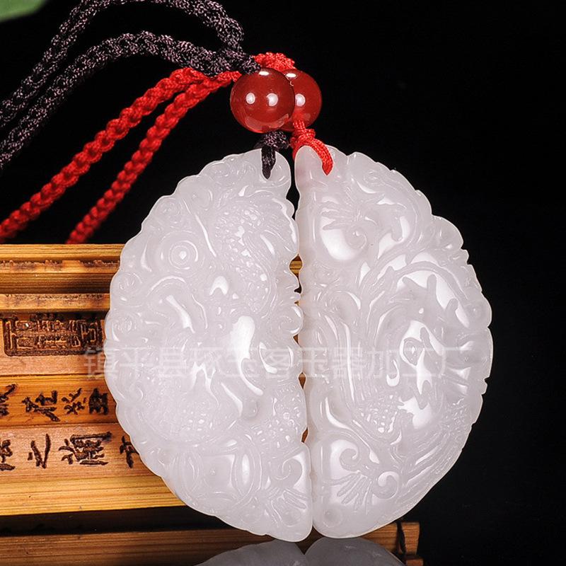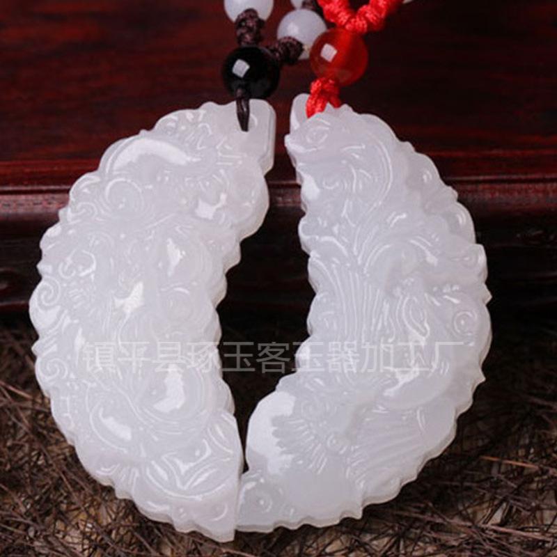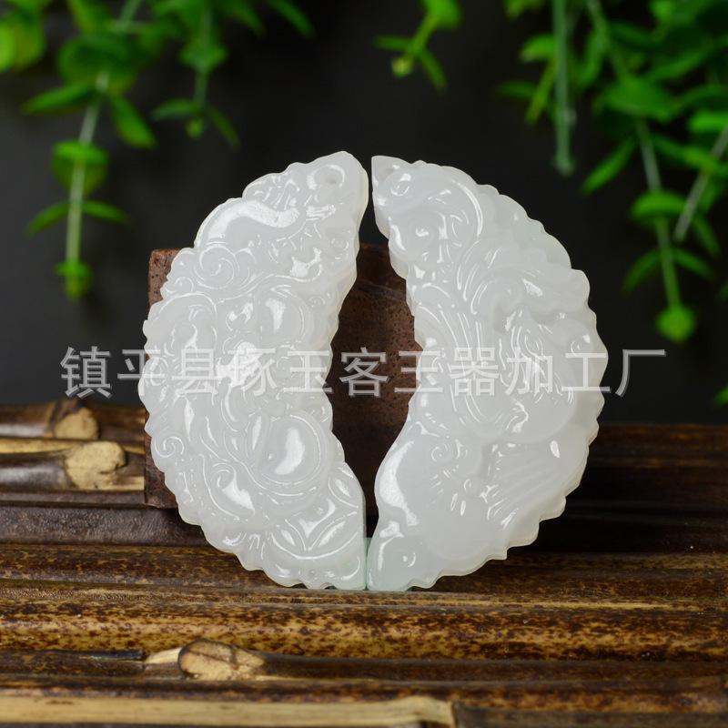 [Nome do produto] Dragão de jade afegão e pingente de fênix em forma de crescente de dragão e fênix