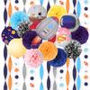 Inclui: 3 rolos de papel crepe + 2 barbantes de papel + 9 flores de papel de 30CM + 6 lanternas. Por favor, deixe uma mensagem se precisar de outros acessórios.