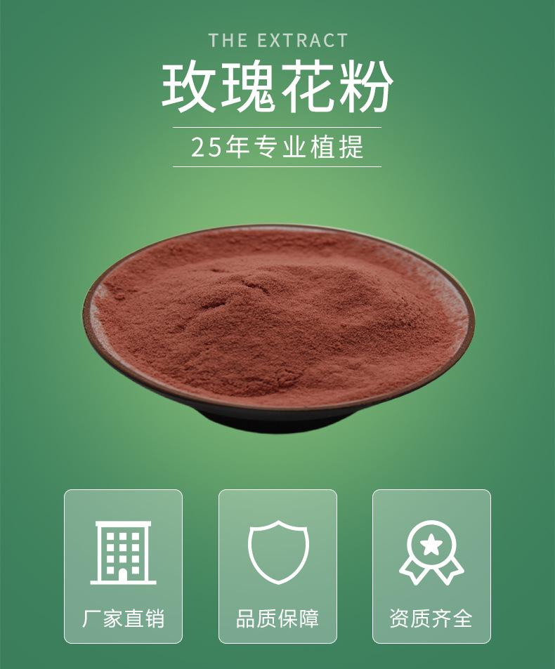 Pétalas de rosas são purificadas e concentradas por tecnologia de membrana e, em seguida, liofilizadas a vácuo. Os nutrientes, efeitos de cor e outros ingredientes eficazes da rosa são bem preservados. O produto é facilmente solúvel em água e a solução aquosa é vermelho-púrpura com um tom de cor estável sob condições ácidas.