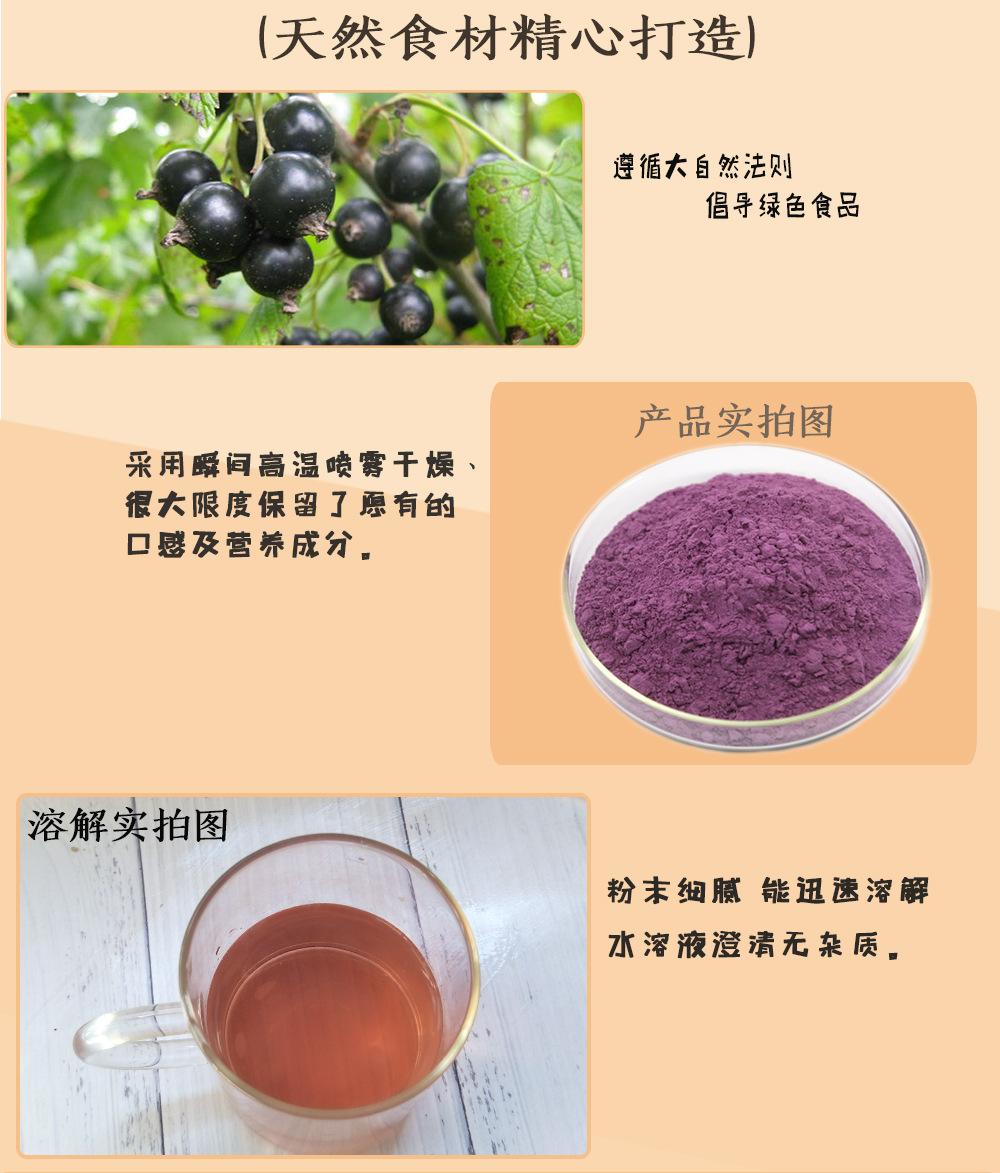 | 【Introdução do produto】 | Feito de polpa de groselha preta fresca e seca por pulverização, o produto é confiável. |