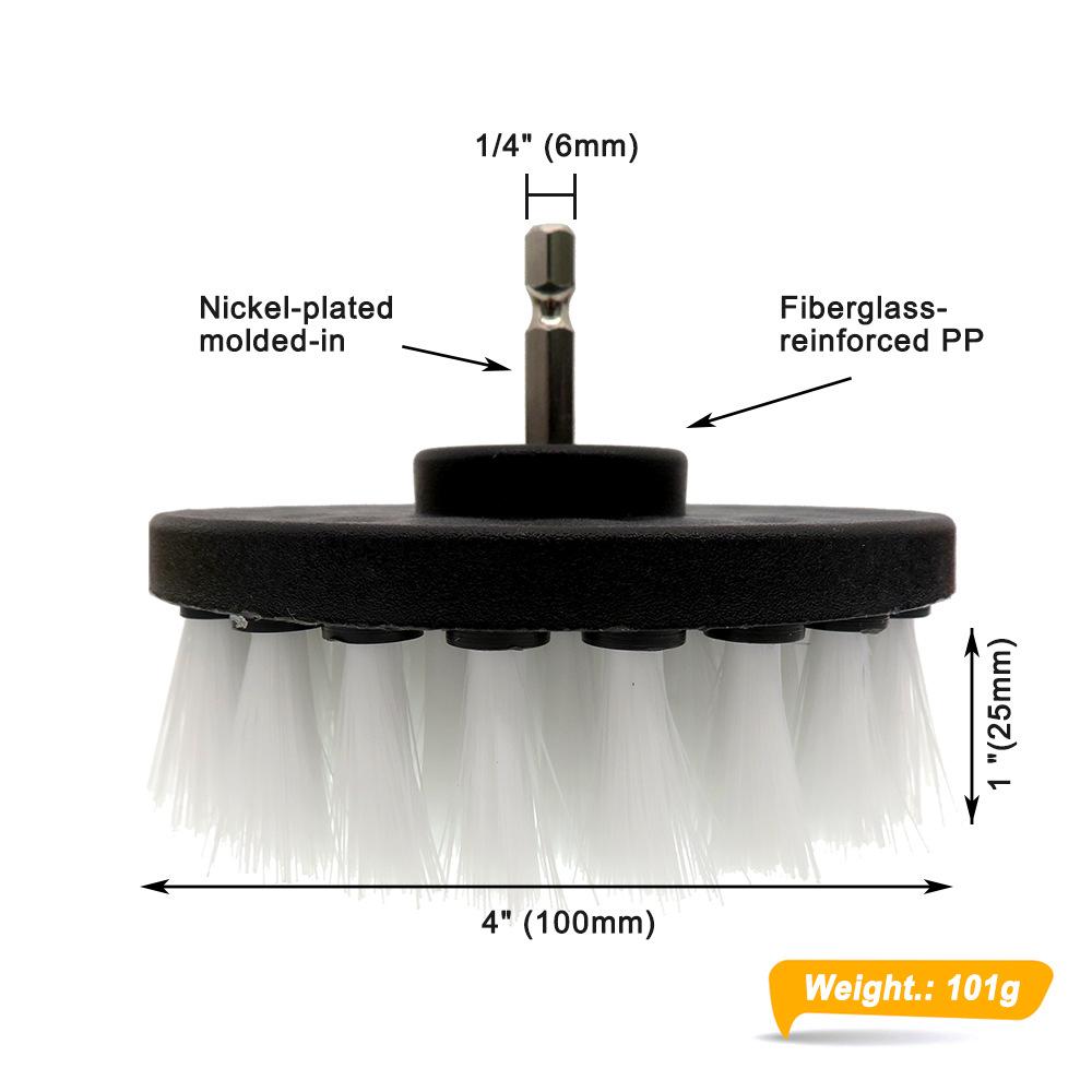 Conjunto de 20 peças de escova para furadeira elétrica: 1 escova branca de 2 polegadas + 1 escova amarela de 2 polegadas + 1 escova amarela de 3,5 polegadas + 1 escova preta de 4 polegadas + 1 escova amarela de 4 polegadas + 1 escova branca de 4 polegadas + 1 escova vermelha de 5 polegadas + 3 esfregões verdes de 4 polegadas + 3 esfregões cinzas de 4 polegadas + 3 esfregões vermelhos de 4 polegadas + 1 disco de moagem de 4 polegadas com haste + 2 esponjas planas laranja de 4 polegadas + haste de extensão de 150 mm.