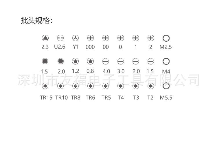 Torx:T2 T3 T4 TR5 TR6 TR8 TR10 TR15