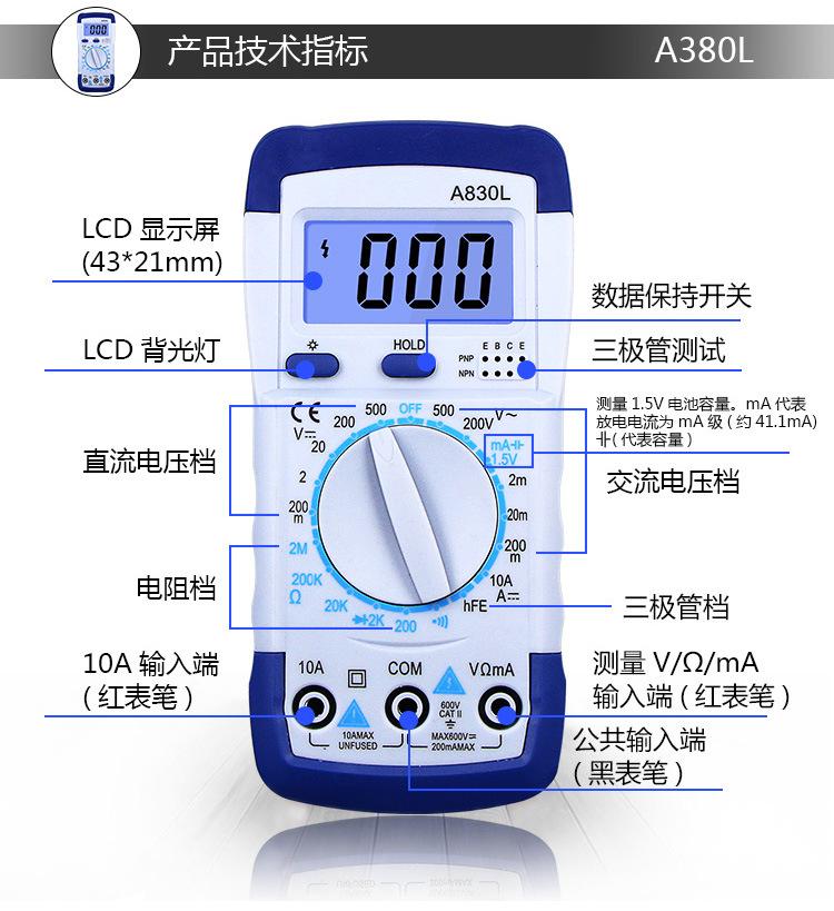 Nota: Para o modelo 830B, há duas cores para teste de transistor. Por favor, consulte o produto real recebido. Obrigado!