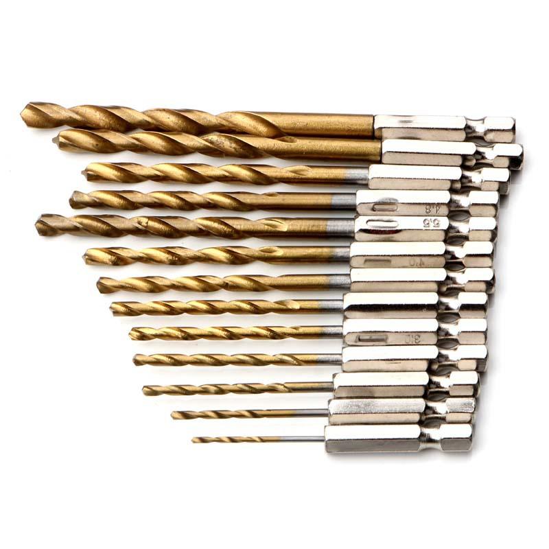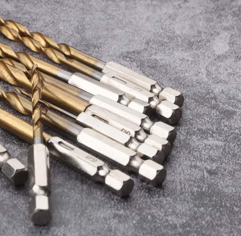 Conjunto de brocas helicoidais de 13 peças, ferramenta elétrica, broca de alta velocidade, cabo hexagonal de 1,5-6,5 mm, conjunto de chaves de fenda de ar banhadas a titânio, vendas diretas da fábrica, atacado