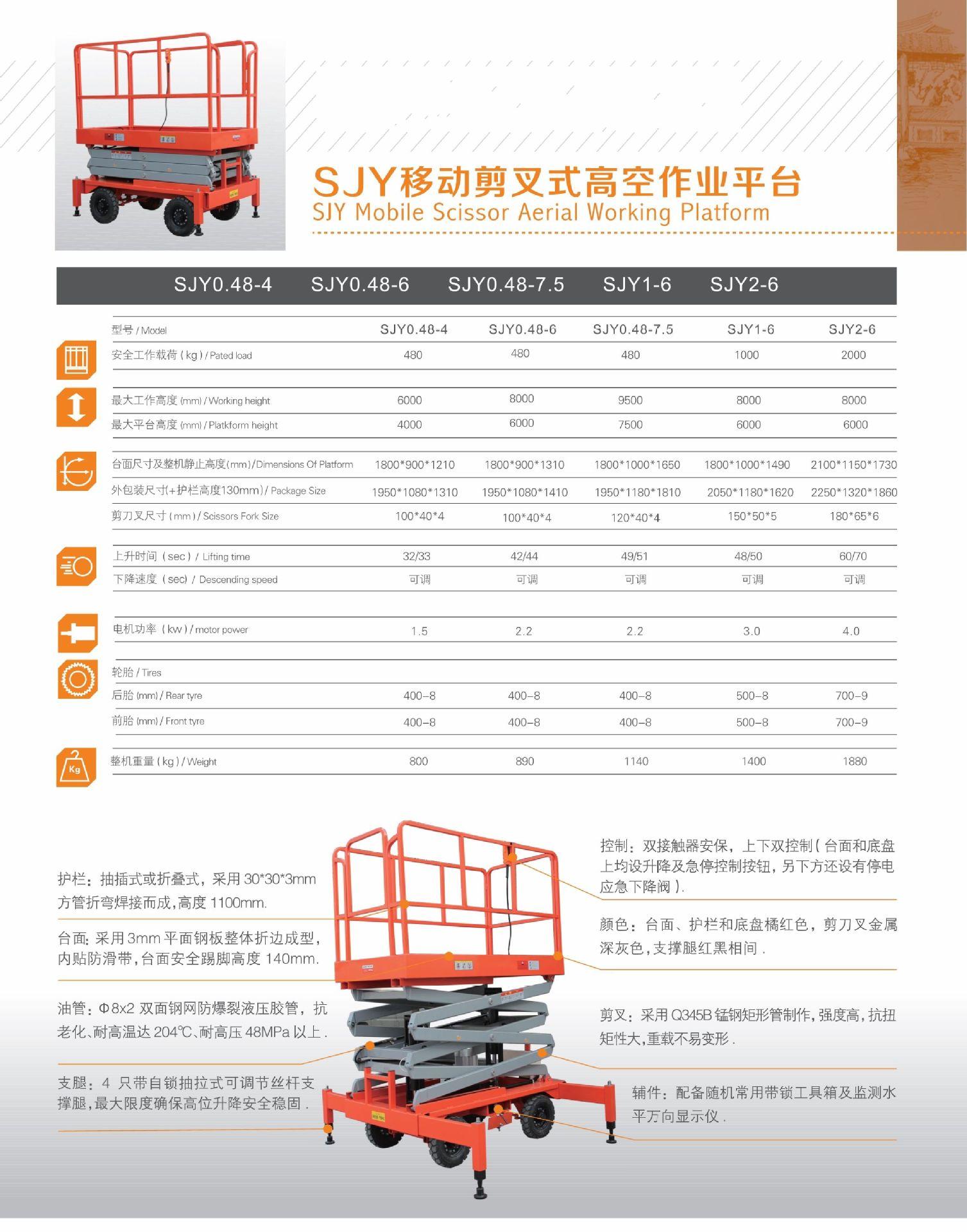 Nome do produto: Plataforma elevatória de tesoura móvel - tipo SJY