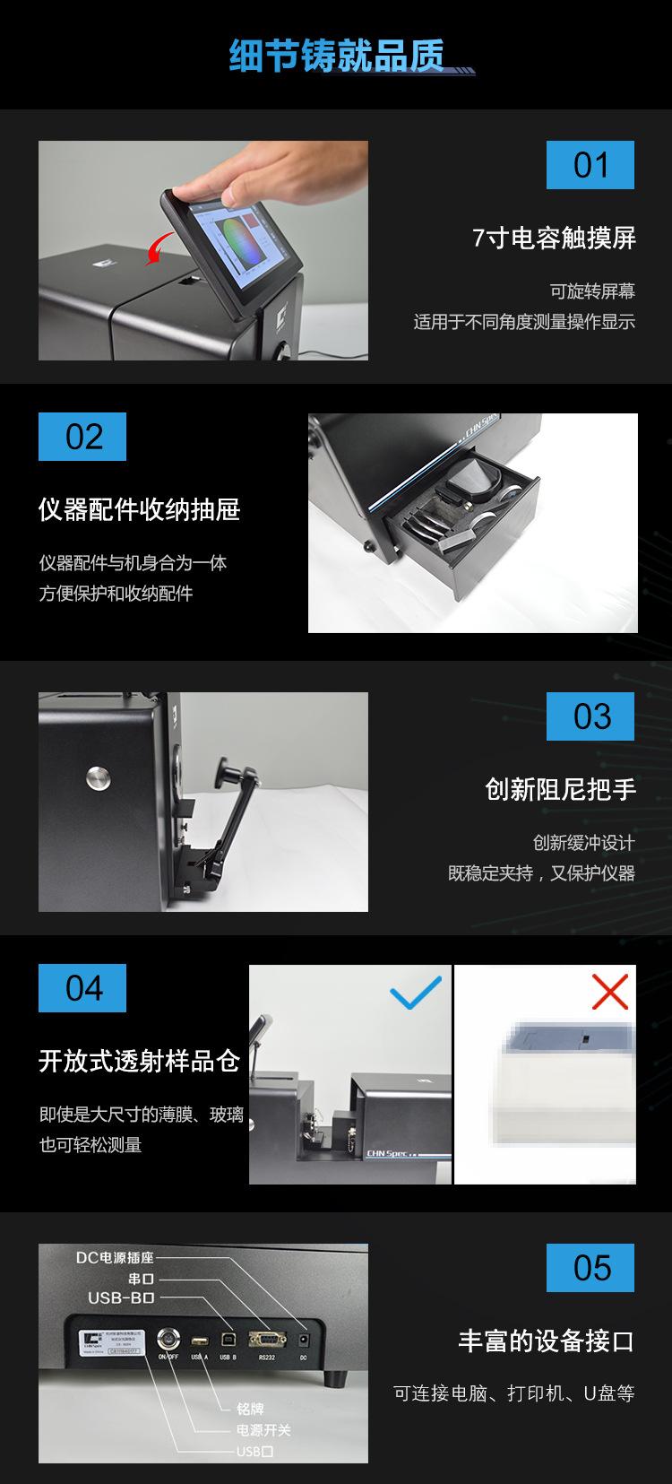 *Adequado para medição de cor de vidro e líquidos químicos: O espectrofotômetro de transmitância C5-810 é um espectrofotômetro de alto desempenho usado especialmente para medir parâmetros como transmitância, absorbância, concentração e cromaticidade de materiais.