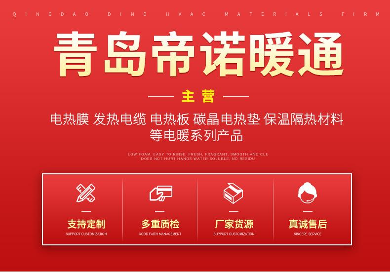 Qingdao Fengnuan Indústria e Comércio Co., Ltd.Os principais produtos são películas de aquecimento elétrico, placas de aquecimento elétrico, almofadas de aquecimento elétrico de cristal de carbono, materiais de isolamento térmico, termostatos e materiais auxiliares de aquecimento de piso. Eles são registrados e aprovados pelos departamentos industriais e comerciais nacionais.Qingdao Fengnuan Indústria e Comércio Co., Ltd.Temos as qualificações para sermos agentes de películas de aquecimento elétrico, placas de aquecimento elétrico, almofadas de aquecimento de cristal de carbono, materiais de isolamento térmico, termostatos e materiais auxiliares de aquecimento de piso.Qingdao Fengnuan Indústria e Comércio Co., Ltd.Excelente qualidade do produto, amplas perspectivas de mercado e generosos benefícios aos agentes tornam mais fácil para você iniciar um negócio e investir.Qingdao Fengnuan Indústria e Comércio Co., Ltd.Damos boas-vindas calorosas a todas as pessoas com ideais elevados para visitar e inspecionar. Buscar desenvolvimento, alcançar saltos, construir paixão pelo desenvolvimento de forma completa, agarrar firmemente oportunidades estratégicas importantes e se esforçar para embarcar em uma nova jornada de rápido desenvolvimento;Qingdao Fengnuan Indústria e Comércio Co., Ltd.----Convidamos você sinceramente a se juntar a nós!