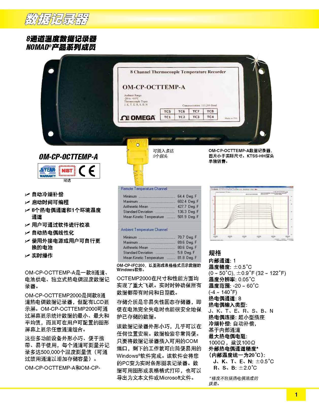OM-CP-OCTTEMP-A Registrador de dados de temperatura de 8 canais