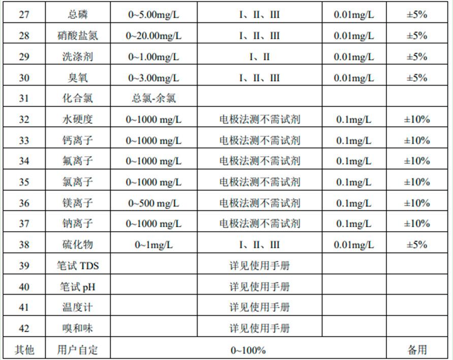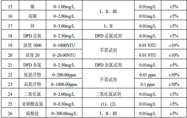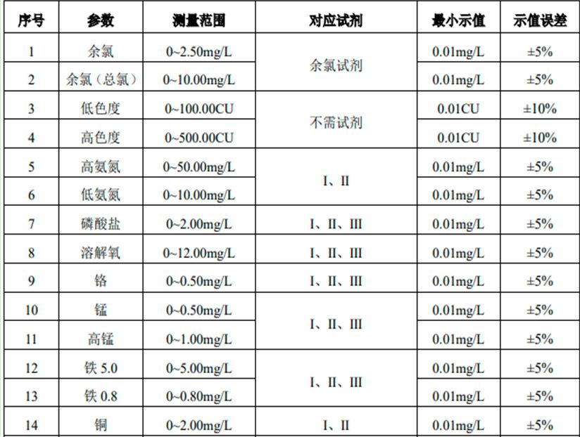 O testador de análise de qualidade de água JY-0168 pode ser usado para determinar os parâmetros de turbidez, cromaticidade, sólidos suspensos, cloro residual, cloro total, cloro combinado, dióxido de cloro, oxigênio dissolvido, nitrogênio amoniacal (em N), nitrito (em N), cromo, ferro, manganês, cobre, níquel, zinco, sulfato, fosfato, nitrogênio nitrato, detergente aniônico, DQO, sulfeto, etc. em esgoto. Os usuários podem calibrá-lo e usá-lo na forma de porcentagem de acordo com seus próprios requisitos, o que proporciona conveniência para os clientes. Este instrumento pode ser amplamente utilizado para detecção de esgoto em plantas aquáticas, indústrias alimentícias, químicas, metalúrgicas e farmacêuticas, e é um instrumento de laboratório comumente usado.