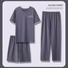 Pijama de três peças Modal Masculino Calças de manga curta Fino Verão Plus Size Masculino Algodão Seda Primavera e Verão Roupas para Casa