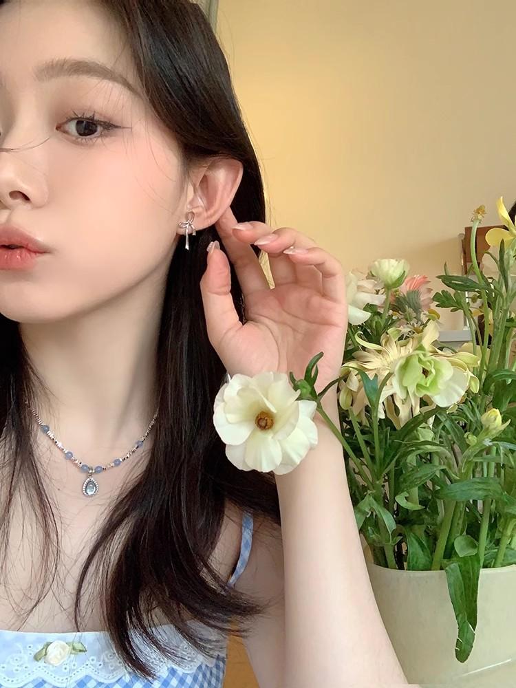Brincos de flor de camélia azul com agulha de prata 925 para mulheres, brincos de temperamento fresco, brincos doces, design de nicho, brincos simples e versáteis