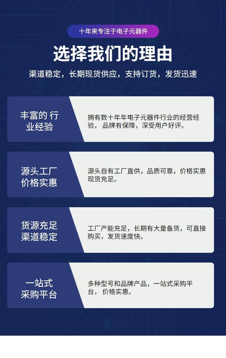 1: Devido à grande variedade de produtos eletrônicos, grande tráfego, forte sazonalidade e falta de estoque do fabricante, alguns itens não foram colocados nas prateleiras ou atualizados a tempo. Por favor, nos perdoe. Por favor, pergunte à nossa empresa se há estoque ao comprar, e ambas as partes conversarão. Para evitar problemas desnecessários para você devido à falta de estoque!2: Como as condições de mercado mudam a cada dia e os preços dos componentes eletrônicos flutuam muito, os preços marcados nos produtos desta loja não são preços reais (os preços estão sujeitos a consulta). Por favor, me perdoe se houver alguma imprecisão. Obrigado pela sua cooperação!3. Os preços dos nossos produtos são todos exclusivos de impostos. Se você precisar de uma fatura de imposto, entre em contato conosco.Precauções:1. As condições de mercado mudam todos os dias, portanto, consulte a cotação do dia para saber o preço.2. Quando o comprador receber a mercadoria, por favor, verifique cuidadosamente a embalagem externa. Se quaisquer sinais óbvios de danos forem encontrados, você pode se recusar a aceitá-la.3. O comprador deve abrir o pacote na frente do entregador para determinar se a aparência do produto está danificada e verificar a quantidade. Se houver algum problema, entre em contato com o gerente da loja no local. Depois de assinar o produto, será considerado sua aprovação da aparência e quantidade do produto.4. Produtos que foram colocados na máquina ou desembalados e não podem ser vendidos novamente não podem ser devolvidos ou trocados. Nossa empresa não será responsável por quaisquer perdas causadas pela logística durante o processo de devolução ou troca. Por favor, esteja avisado. Obrigado pelo seu apoio.