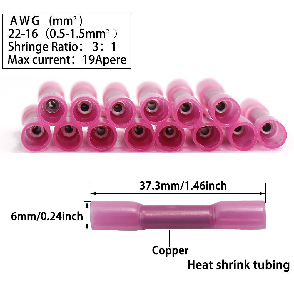 500 peças BHT1.25 fio termoencolhível vermelho; conector 22-18 AWG isolado terminal de crimpagem à prova d'água