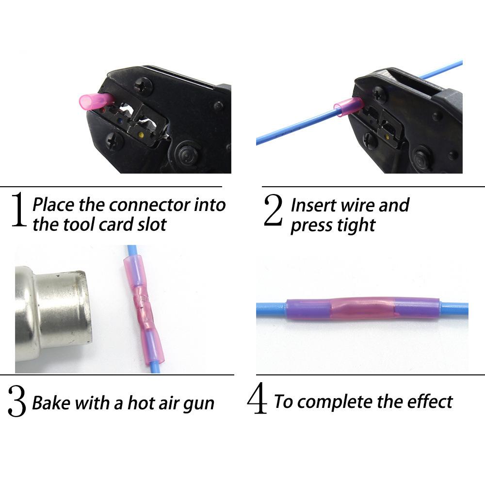 Para obter melhores resultados, use uma pistola de ar quente até que o tamanho diminua e o adesivo flua, preenchendo o espaço dentro do terminal.