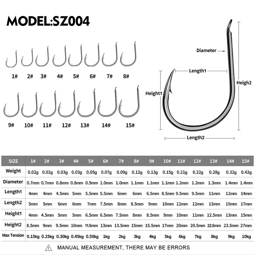 Tamanho do anzol: anzol 3-15# Embalagem: 100 unidades/caixa |