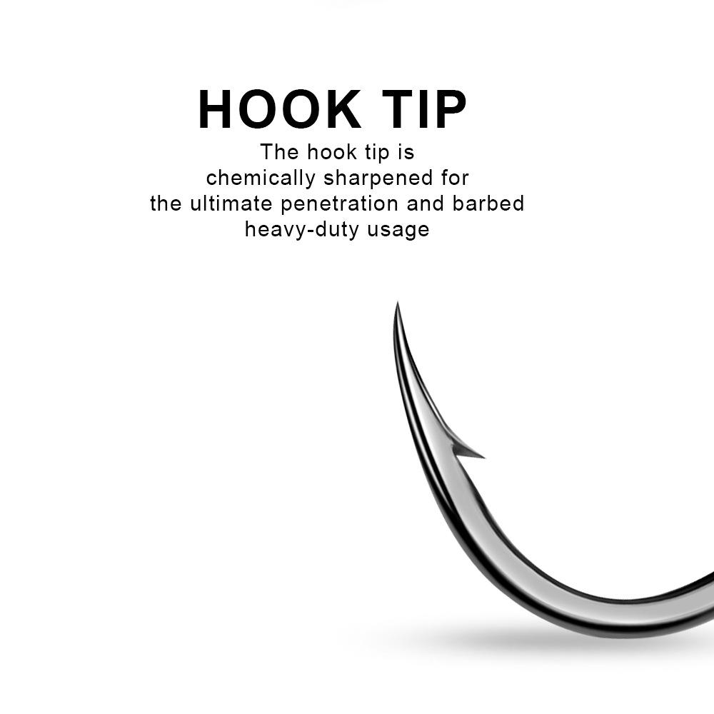 Ponta de anzol afiada Cada ponta de anzol foi polida e testada diversas vezes para garantir a nitidez do anzol, o que pode alcançar o efeito de rápida velocidade de penetração e comprimento de penetração profunda.