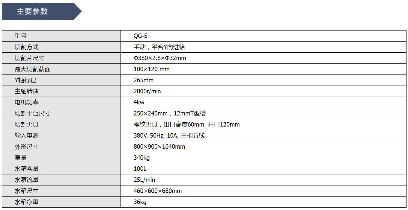 A máquina de corte de amostra metalográfica QG-5 é adequada para cortar vários materiais de amostra metalográfica. A amostra é cortada empurrando a plataforma longitudinalmente. Possui uma grande faixa de corte e forte capacidade de corte. A estrutura de grampo de dupla face pode fixar firmemente a amostra. As peças principais, como as mandíbulas do grampo e a mesa de trabalho, são feitas de aço inoxidável com longa vida útil. A pistola de água de descarga embutida torna a manutenção extremamente conveniente. A sala de corte adota janelas de vidro orgânico transparente de dupla face e iluminação LED embutida, e é equipada com um poderoso dispositivo de exaustão para tornar a observação mais clara. A estrutura do gabinete é conveniente para armazenar vários consumíveis de corte. É equipado com um sistema de resfriamento circulante. A superfície da amostra após o corte é brilhante e plana, sem queimaduras. É um equipamento ideal para cortar amostras.