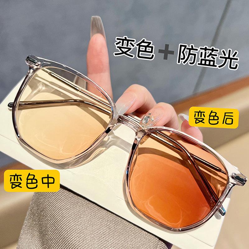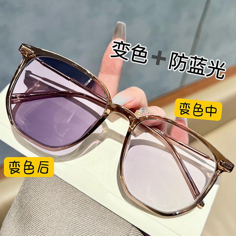 Armação de óculos de celebridade de rua retrô europeia e americana de metal, tendência internacional, óculos planos anti-luz azul, óculos olho de gato que mudam de cor