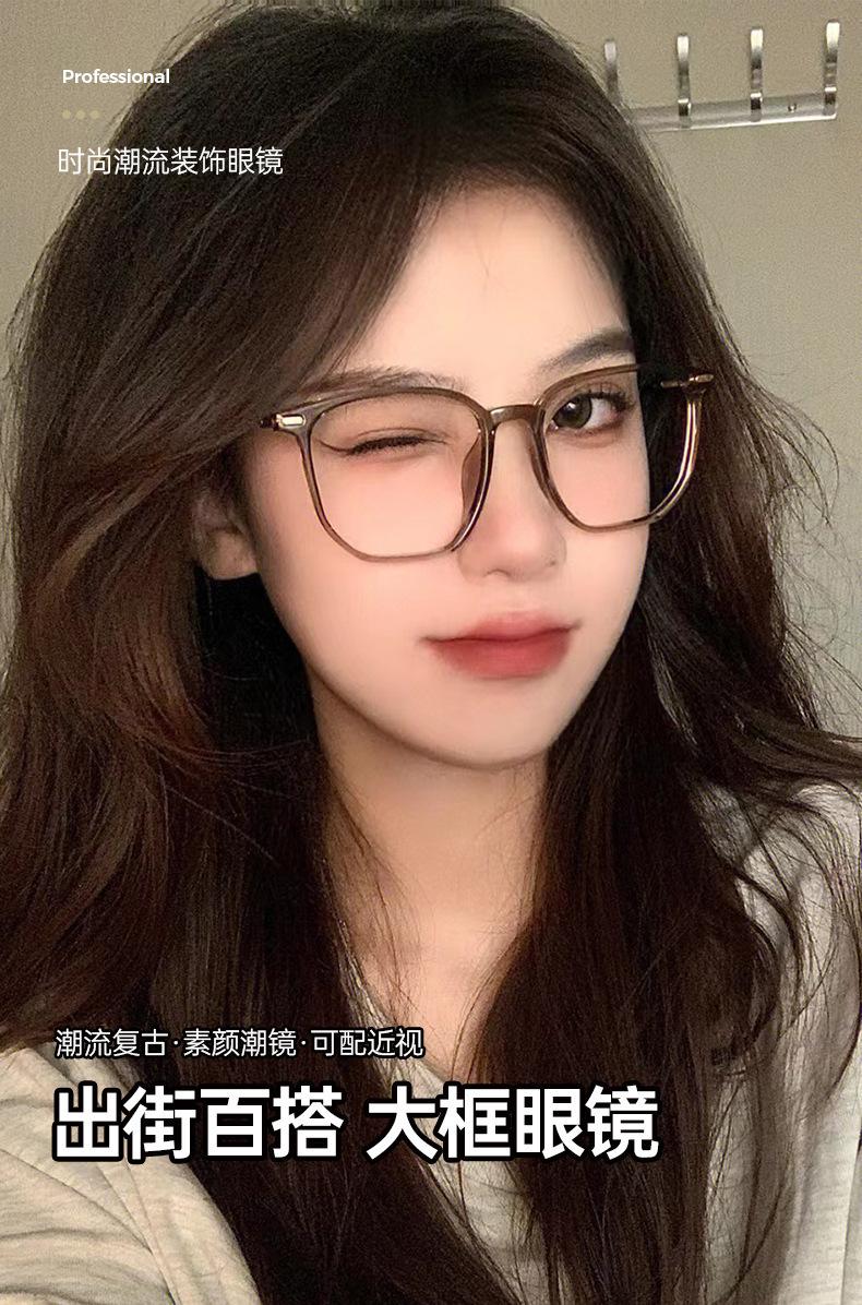 2024 novos óculos anti-luz azul retrô armação preta legal feminina maquiagem simples moda ultraleve miopia armação de óculos plana