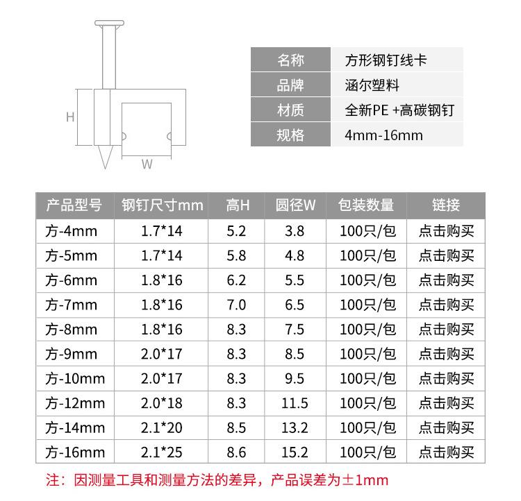 redondoAs especificações de produção de clipes de arame para pregos de aço variam de 4 mm a 40 mm, as especificações dos clipes de arame para pregos de aço quadrados variam de 4 mm a 14 mm e as especificações dos clipes de arame para pregos de aço tipo gancho são 15 mm, 22 mm e 28 mm.