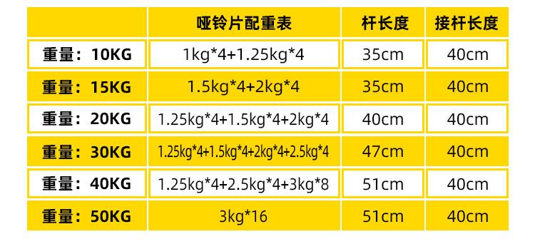 1. Especificações completas em quilogramas10 kg 15kg20kg25kg30kg40kg50kg