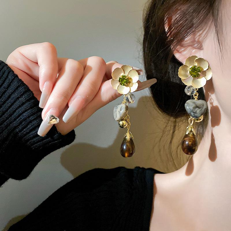 Brincos de borla longa de metal cravejado de diamantes populares europeus e americanos para mulheres, brincos de alta qualidade, temperamento de nicho, brincos transfronteiriços no atacado