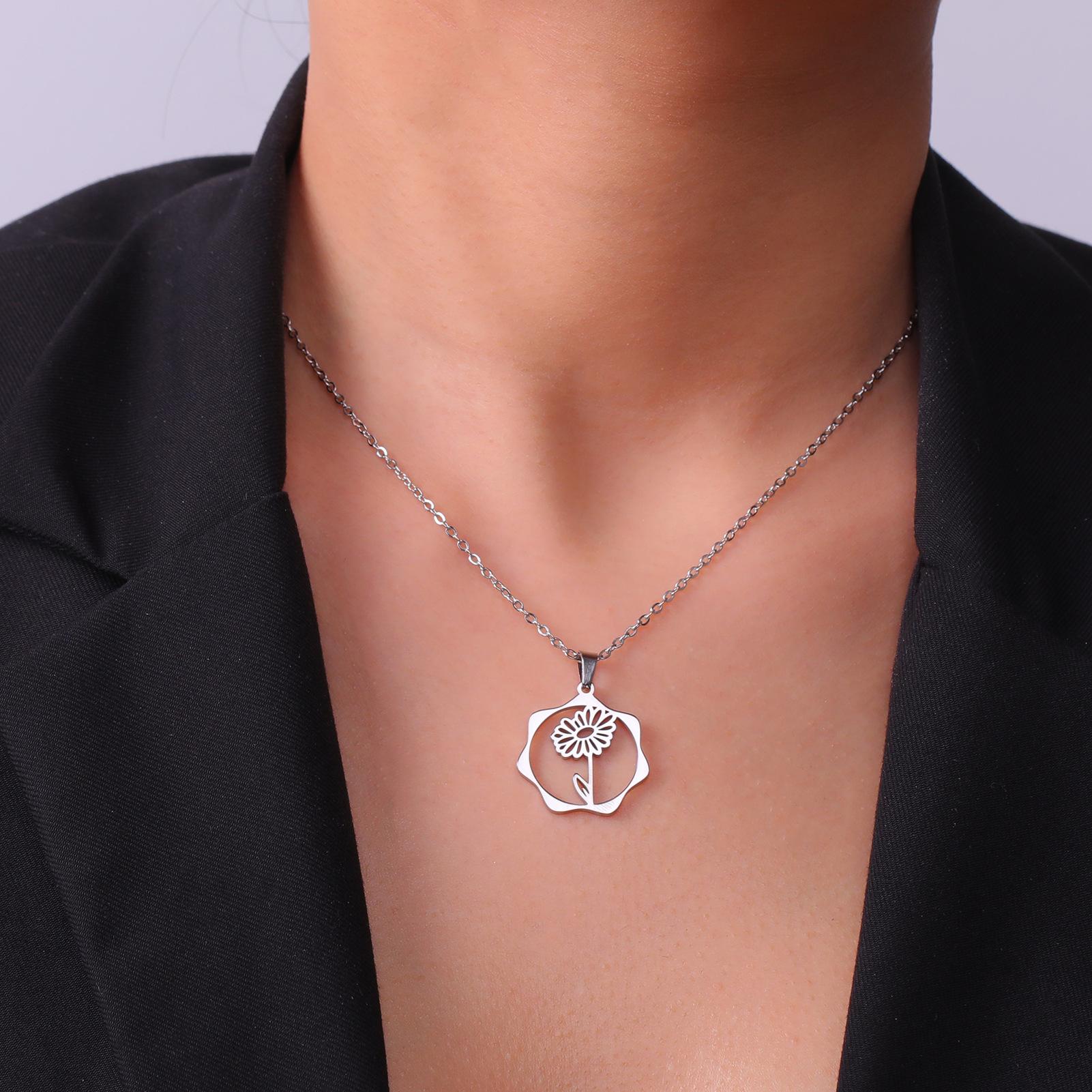 Colar de flores de nascimento em aço inoxidável, flor de neve dourada, lótus, margarida, universo, flor de íris, pingente de flor de dezembro, joia, presente