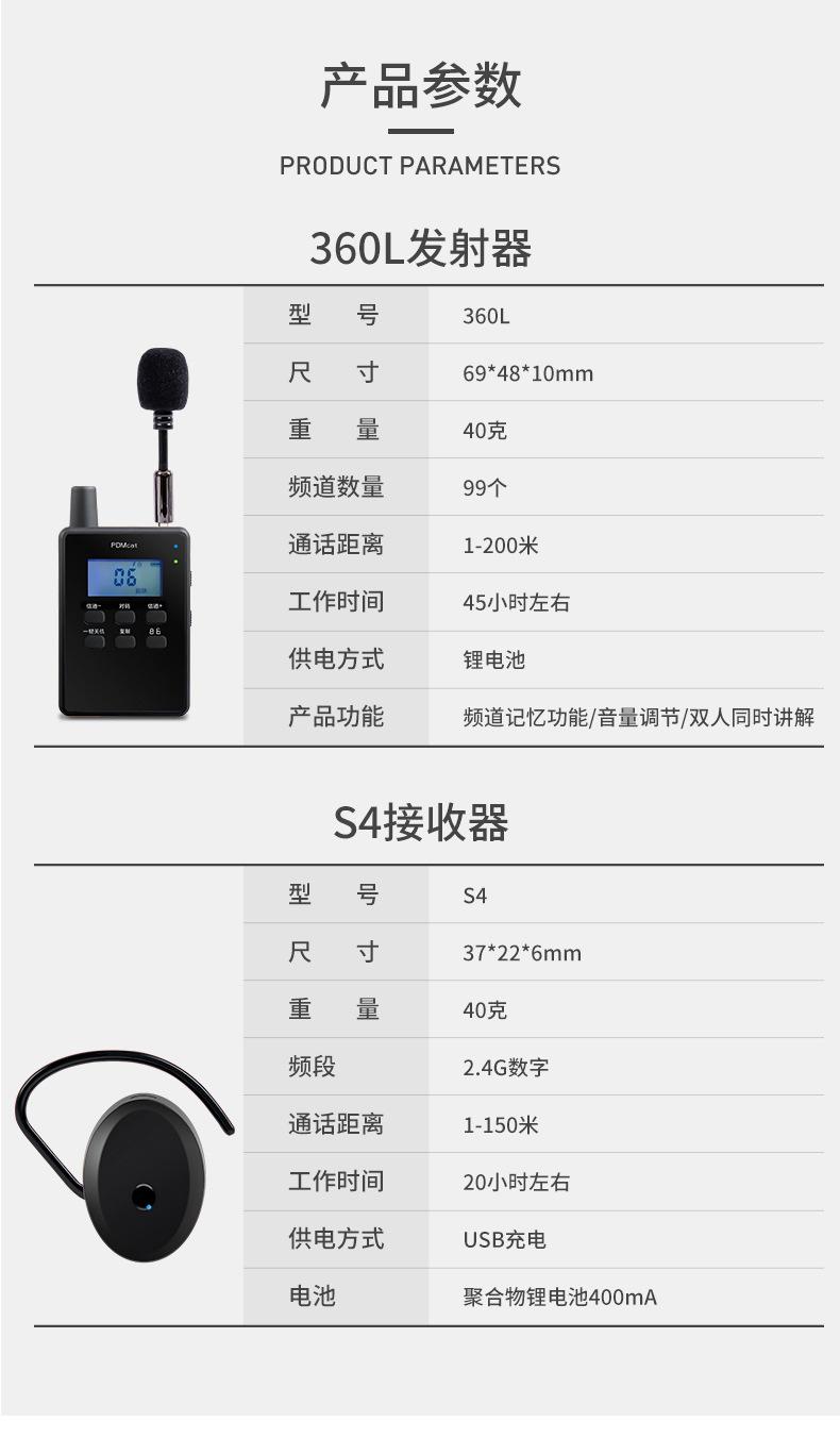 Dicas: O intérprete consiste em um transmissor e um receptor. Os acessórios incluem um carregador e uma caixa de armazenamento. O transmissor e o receptor devem ser comprados como um conjunto antes de poderem ser usados.
