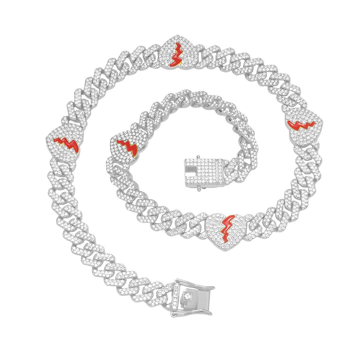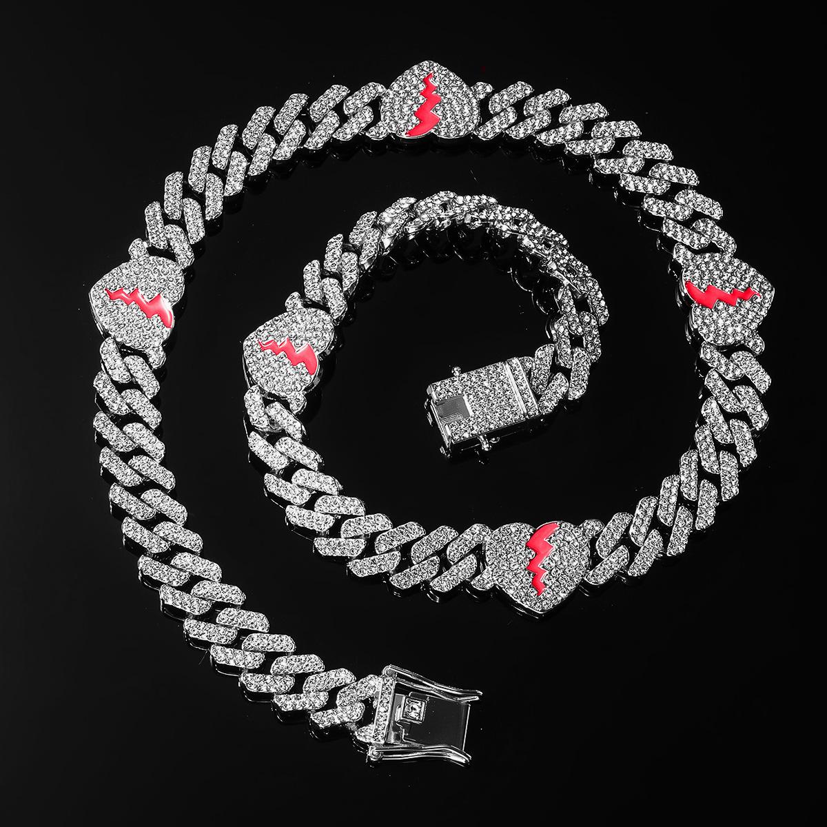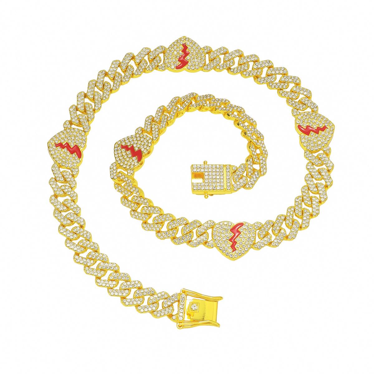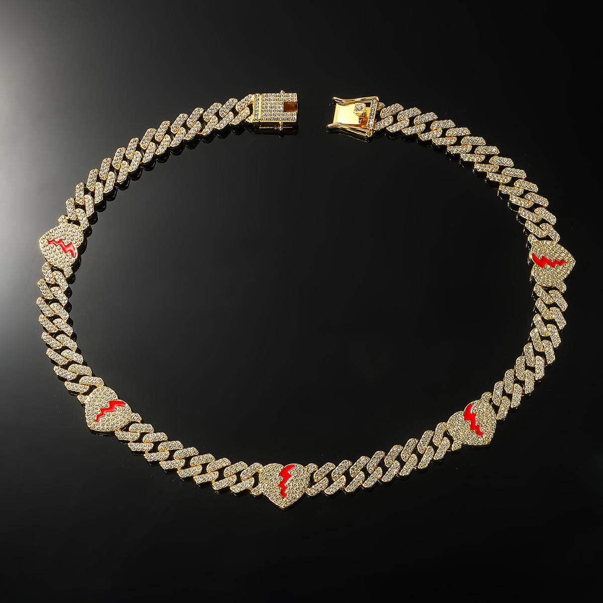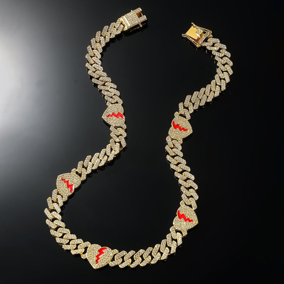 | Collar de cadena cubana con hojas de diamante estilo hip-hop europeo y americano para hombres y mujeres, accesorios de motocicleta punk a la moda |