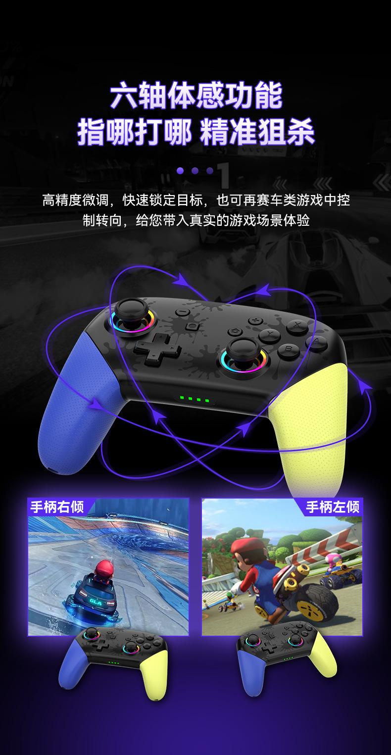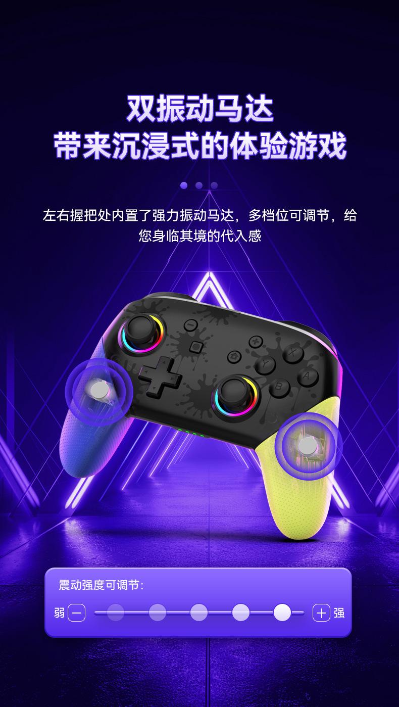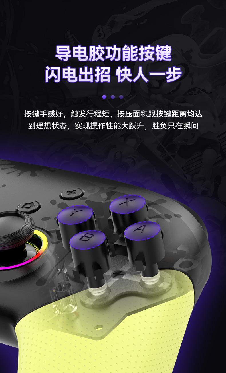2. Despertar con un botón, ráfaga de un botón TURBO, giroscopio somatosensorial de seis ejes, motores de doble vibración, intensidad de vibración ajustable y apertura RGB con joystick colorido.