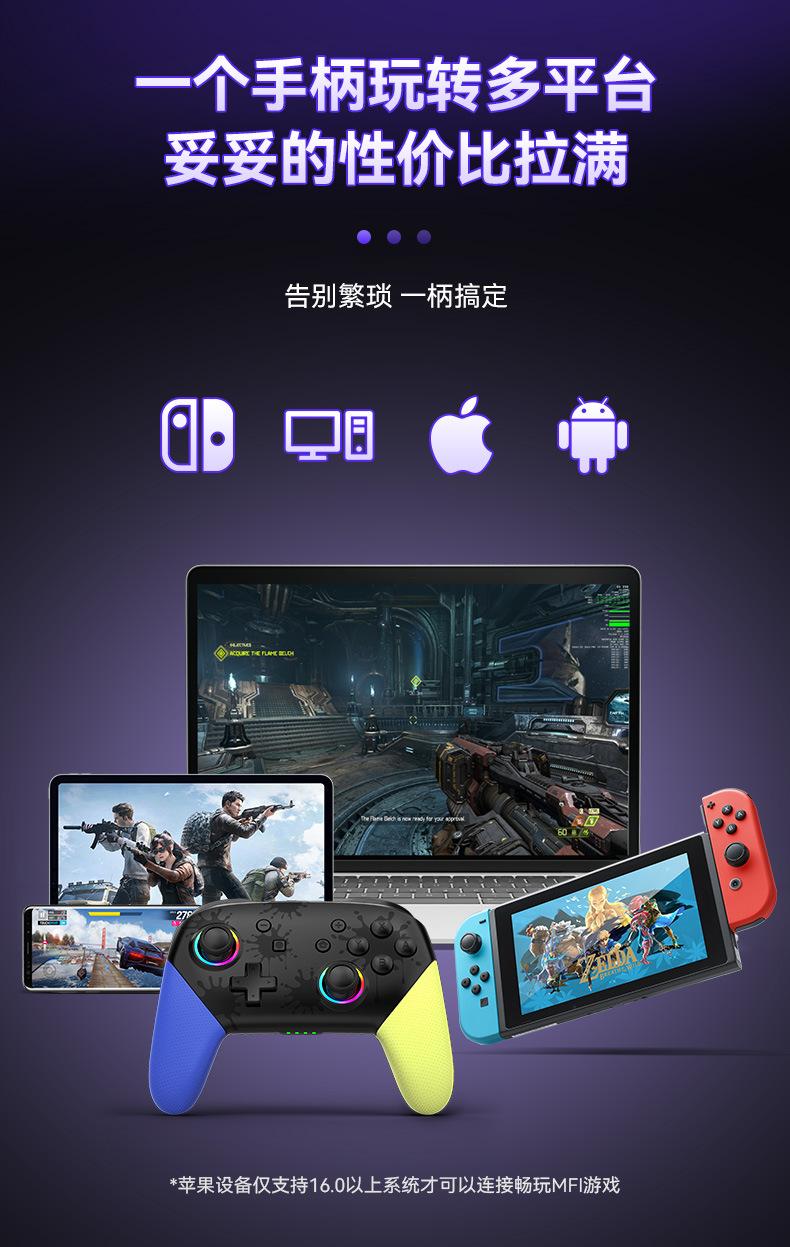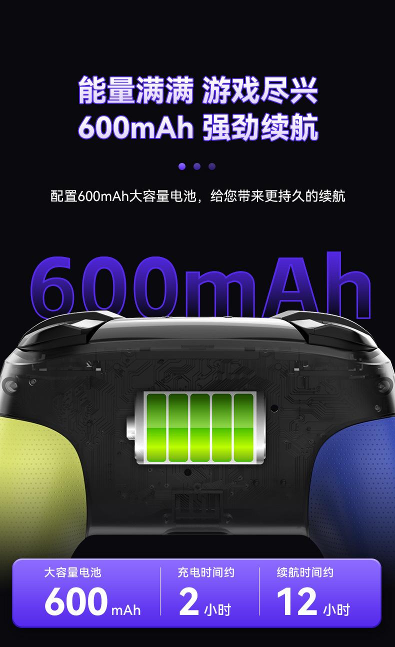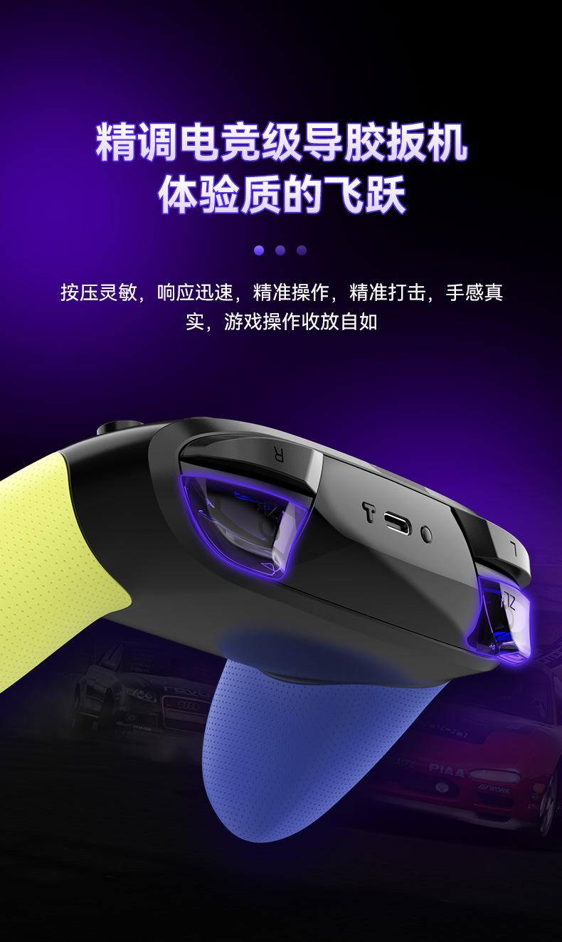 2. Despertar con un botón, ráfaga de un botón TURBO, giroscopio somatosensorial de seis ejes, motores de doble vibración, intensidad de vibración ajustable y apertura RGB con joystick colorido.
