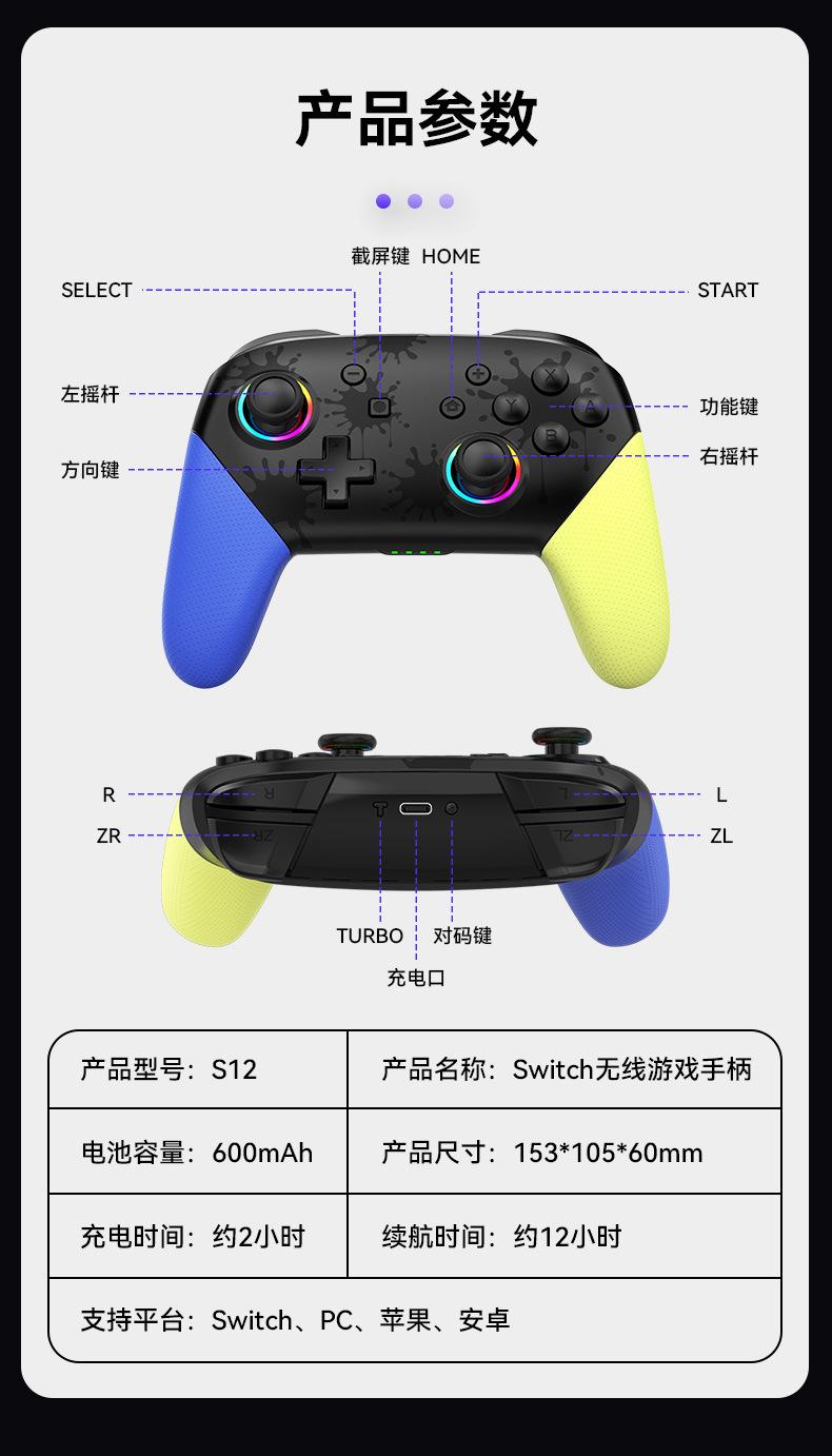 Controlador de juego inalámbrico Bluetooth S12 iluminado