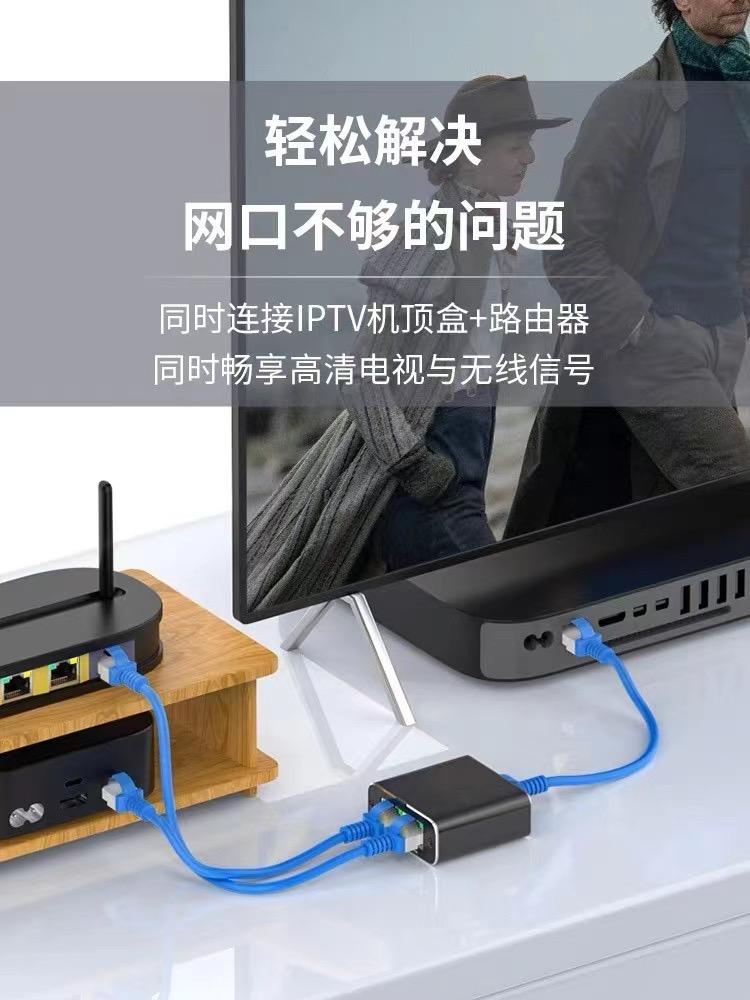 ·Use um par de cabos de rede para realizar um cabo de rede, dois dispositivos de rede funcionam ao mesmo tempo. Uma interface de Internet e dois computadores estão conectados à Internet. IPTV e roteador estão em rede ao mesmo tempo. Um cabo de rede