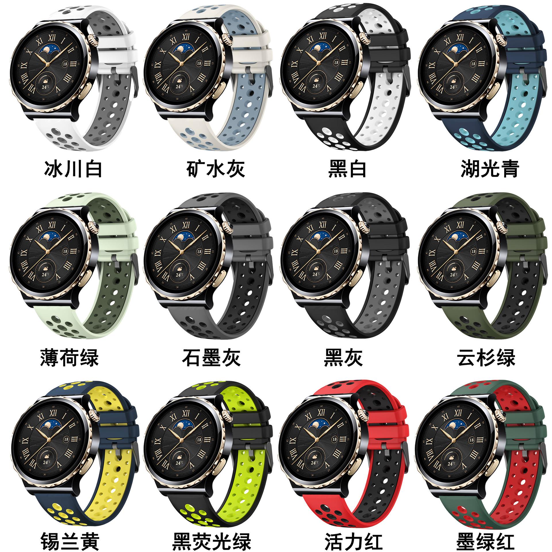 【Nome do Produto】Adequado para Huawei watch GT3pro pulseira de silicone de 20 mm com furo redondo de duas cores Huawei GT2 pulseira de relógio esportivo