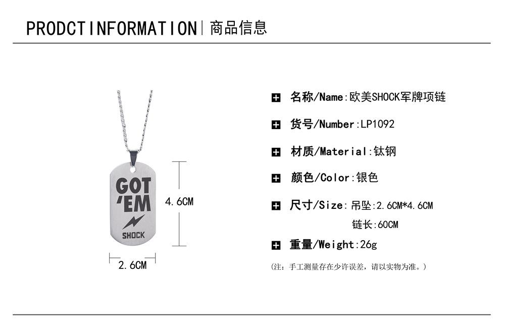 Compre Original marca de moda europeia e americana marca militar moda masculina hip-hop choque colar masculina pingente de aço de titânio all-match camisola cadeia mulheres no atacado no Joom.pro
