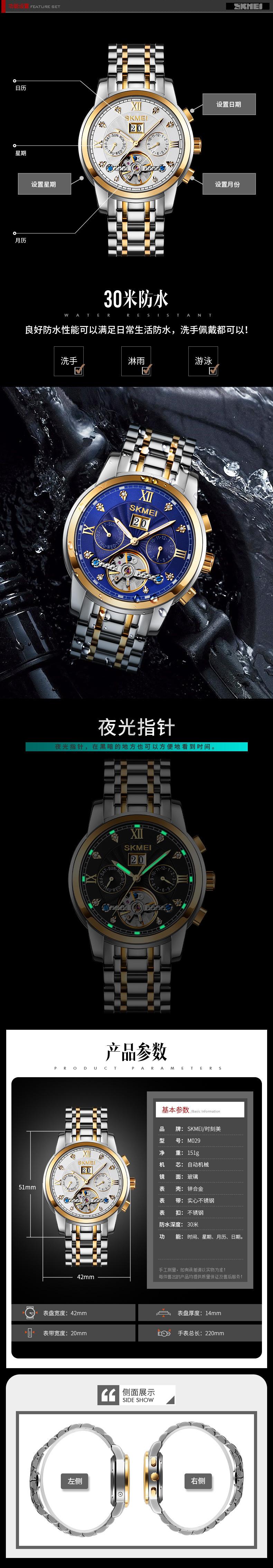 | Material | Caixa de liga de zinco, pulseira de aço inoxidável sólido, espelho de vidro altamente transparente, tampa inferior de aço inoxidável, fivela de aço inoxidável |