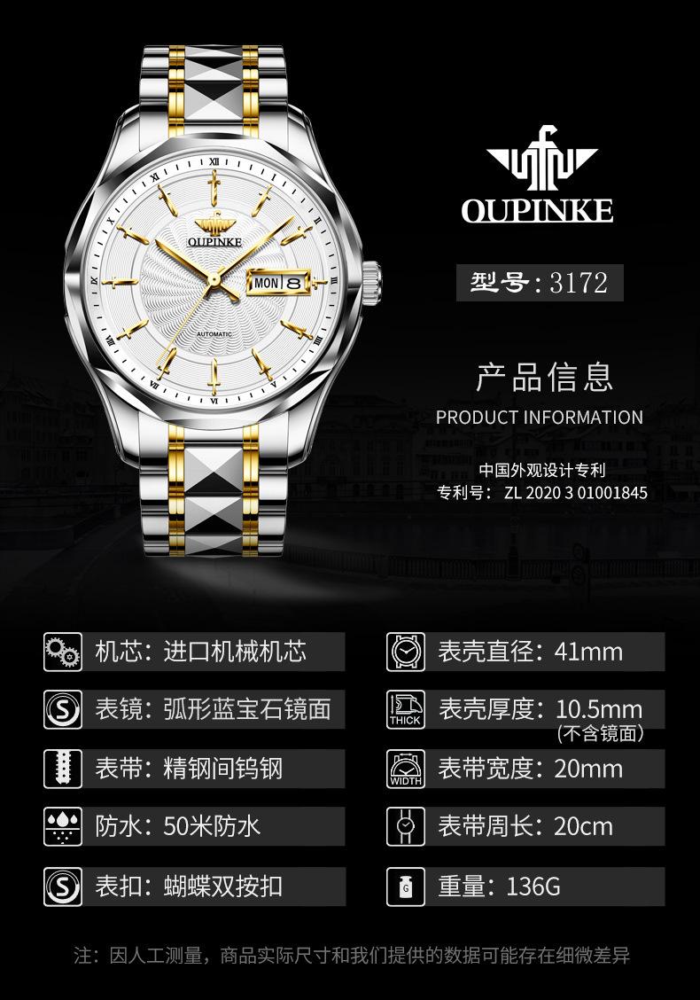 [Movimento]: Movimento mecânico totalmente automático importado, melhor qualidade, cronometragem estável e precisa!