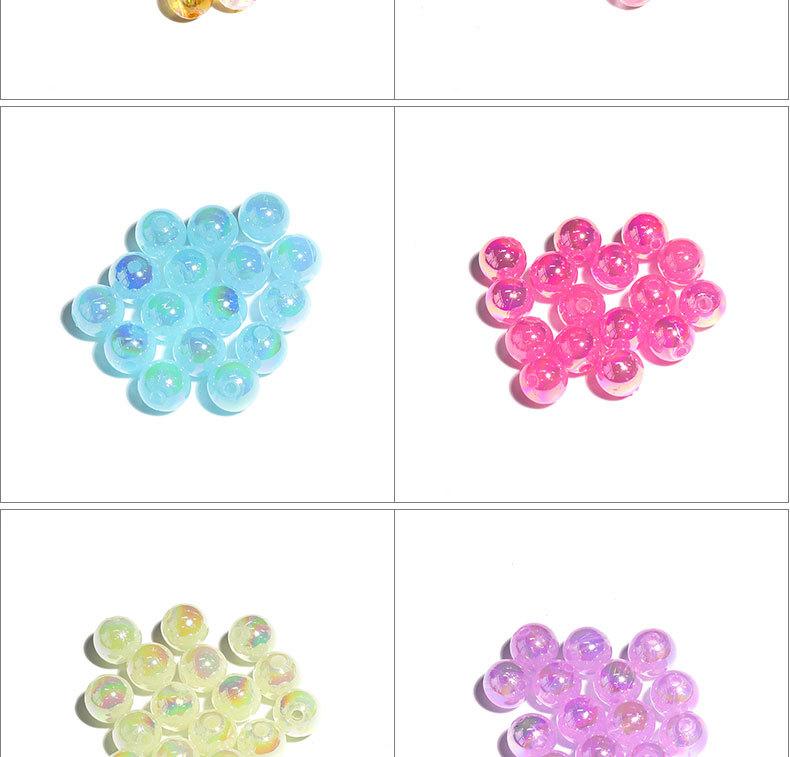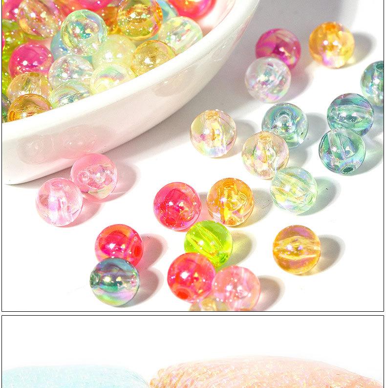 Nome do produto: Contas redondas coloridas de acrílico com furo reto, contas AB galvanizadas, acessórios de joias artesanais