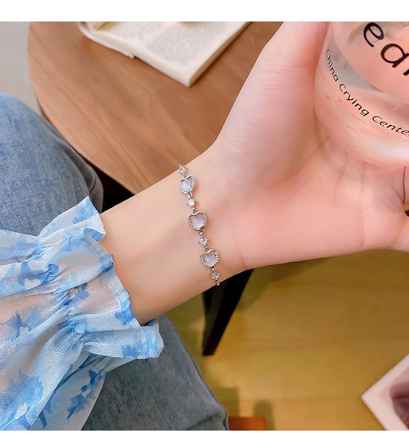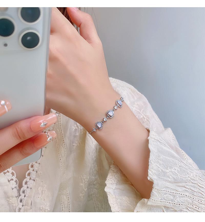 Nicho de alta qualidade brilhante requintado luz de luxo amor coração opala pulseira feminina com cordão pulseira ajustável jóias