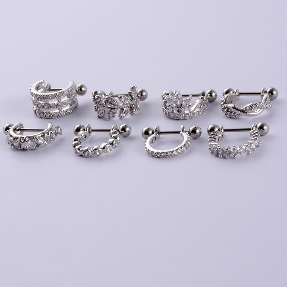 .Nome: Brincos retos de aço inoxidável de venda internacional, brincos de zircônia microincrustada, pinos de osso de orelha, joias de cartilagem de piercing personalizadas, ponto
