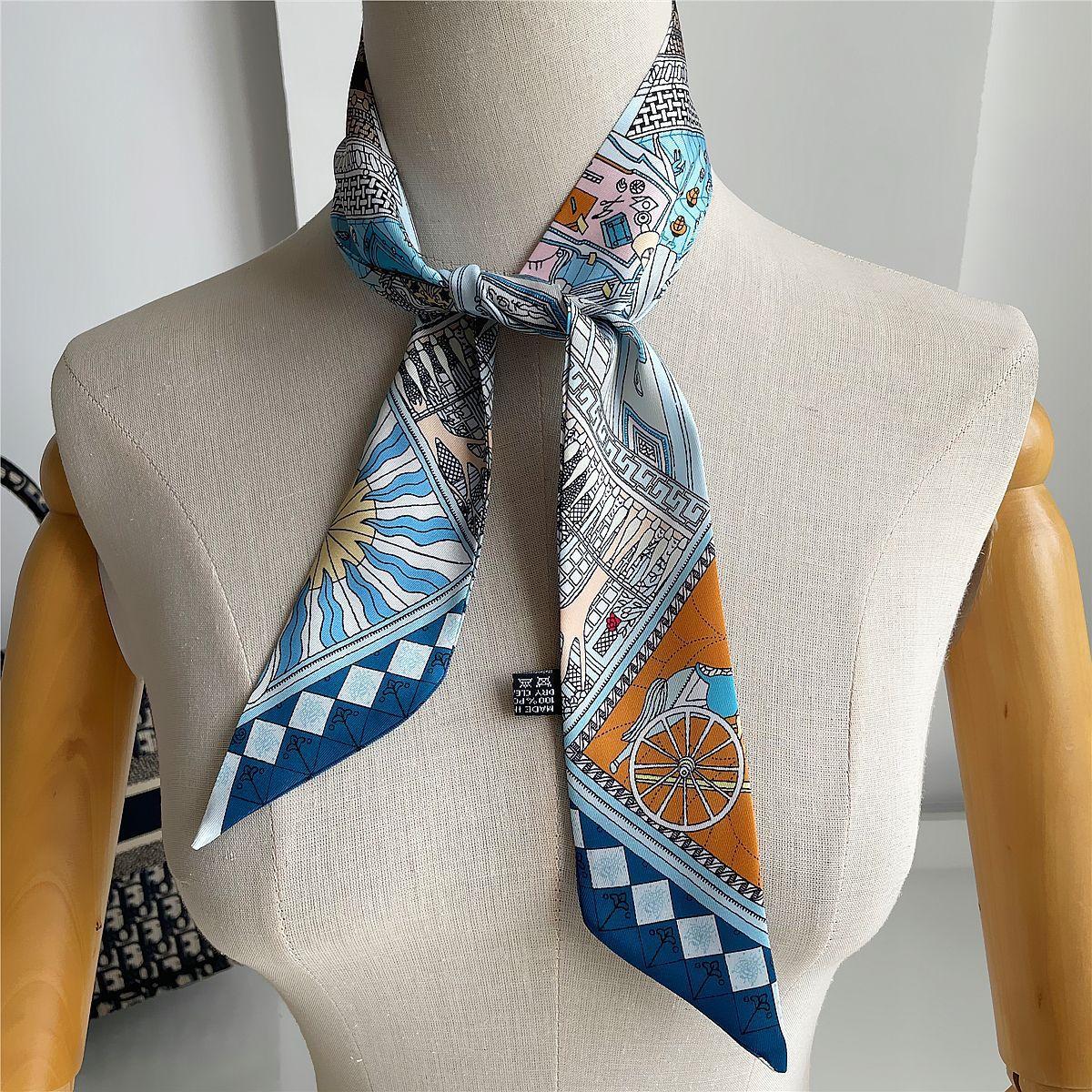 Feito de sarja de cetim pesado de alta qualidade, feito à mão, um lenço de seda é cuidadosamente cortado, costurado, passado e embalado.