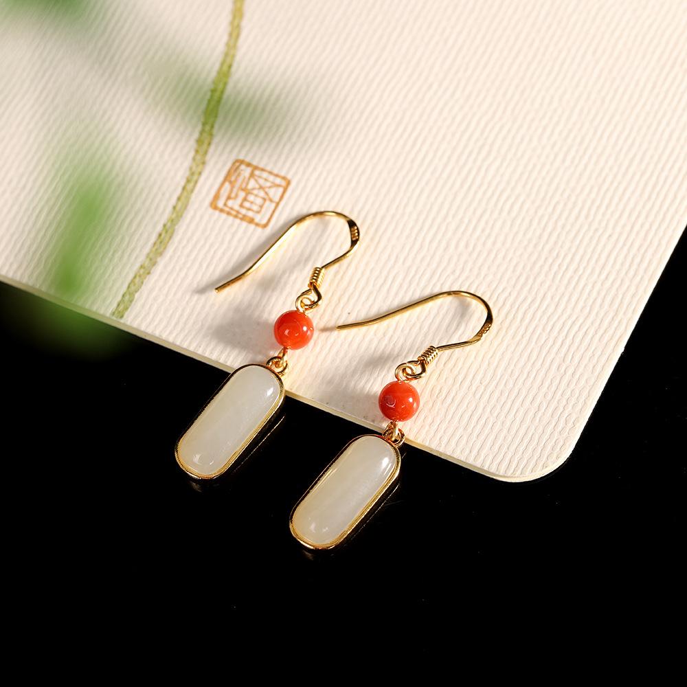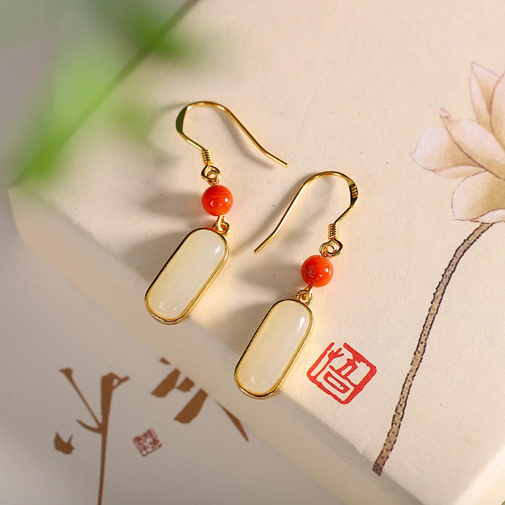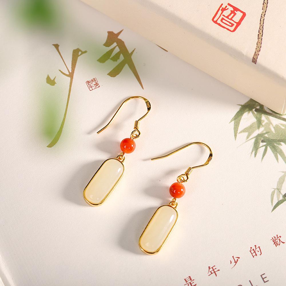 Comprimento do brinco: 4,0 cm * 0,7 cm Comprimento do jade Hetian 1,5 cm largura: 0,6 cm |