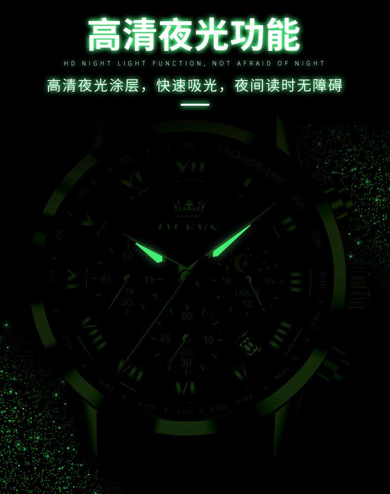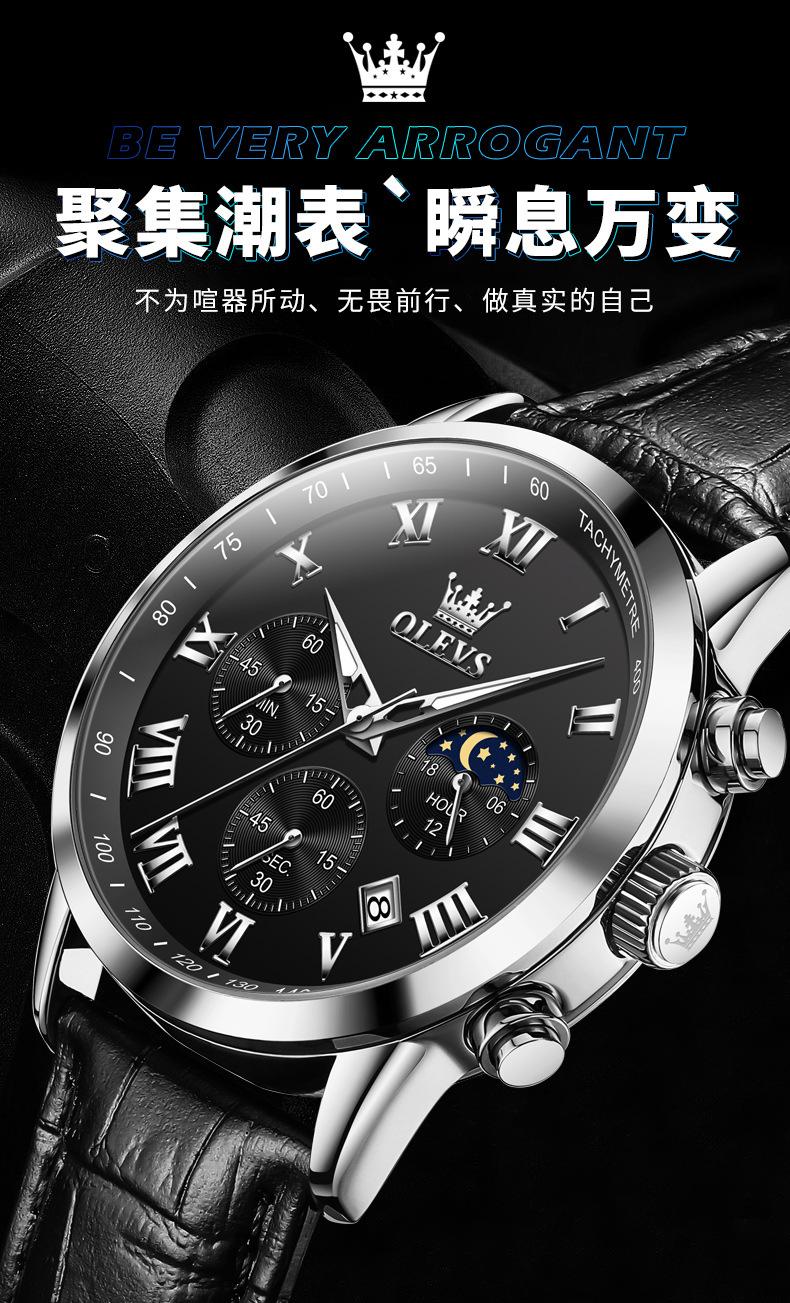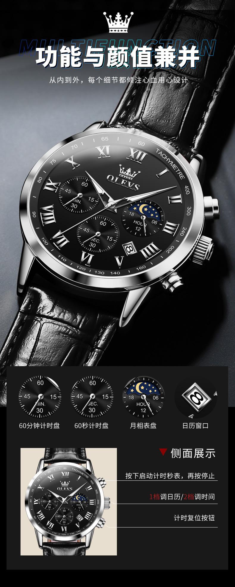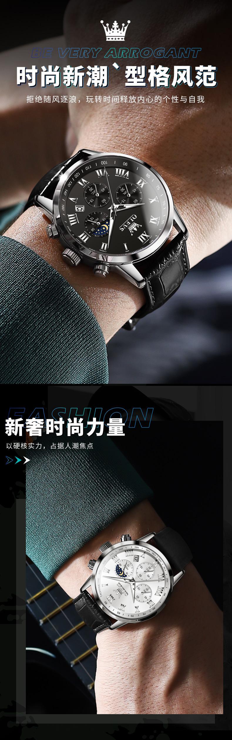 【Espessura】: 11 mm, estilo cronógrafo multifuncional com fases da lua!!