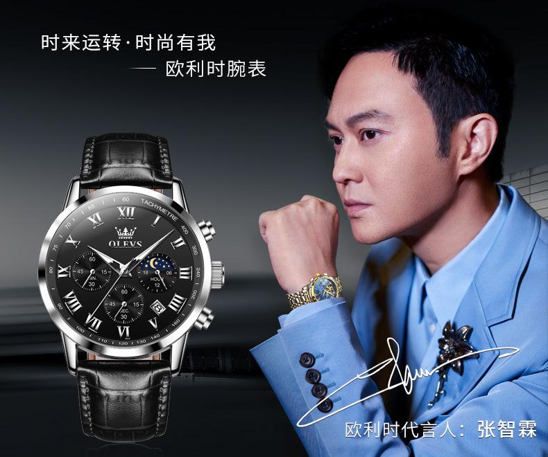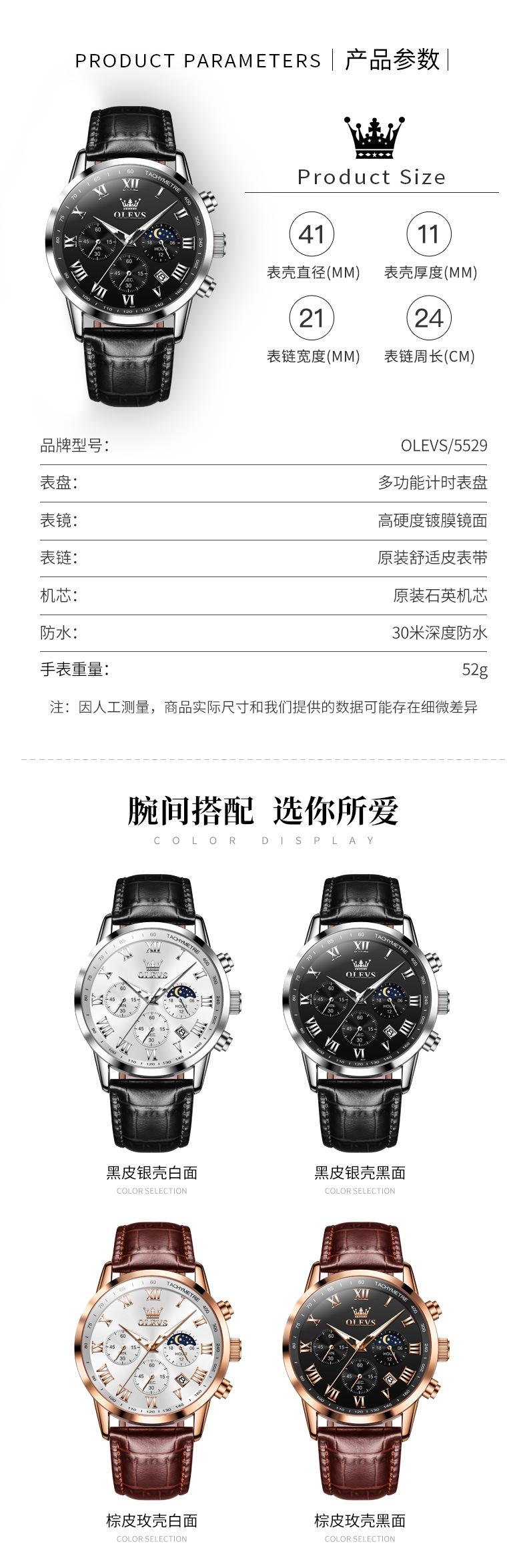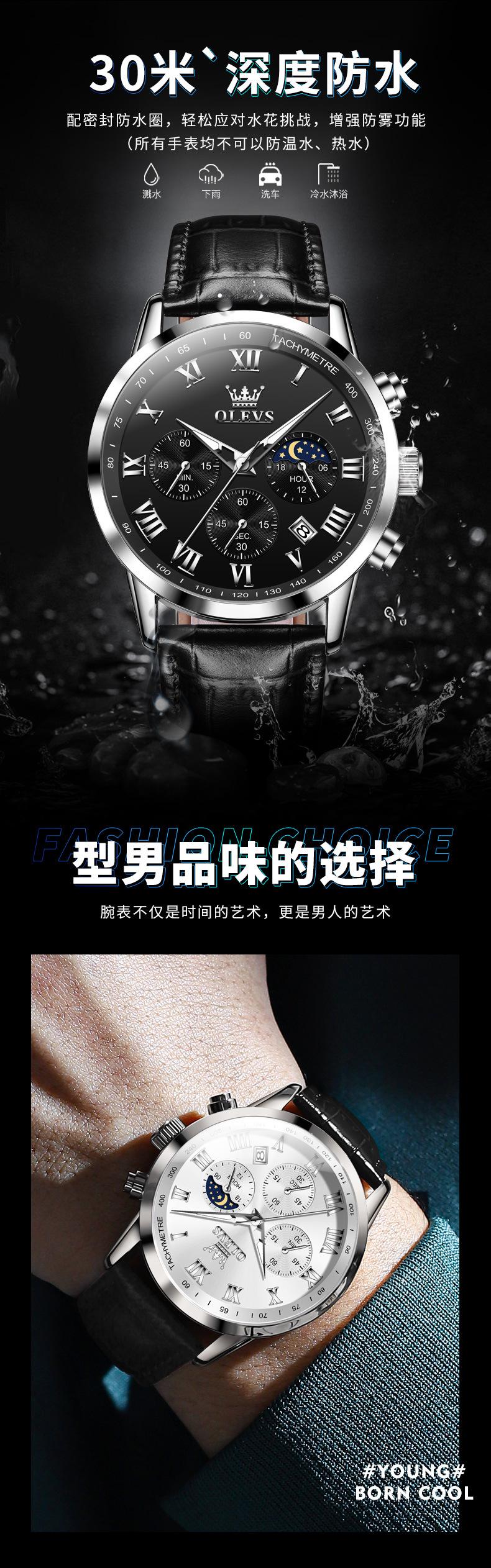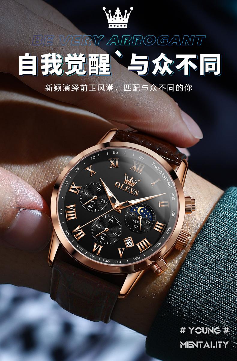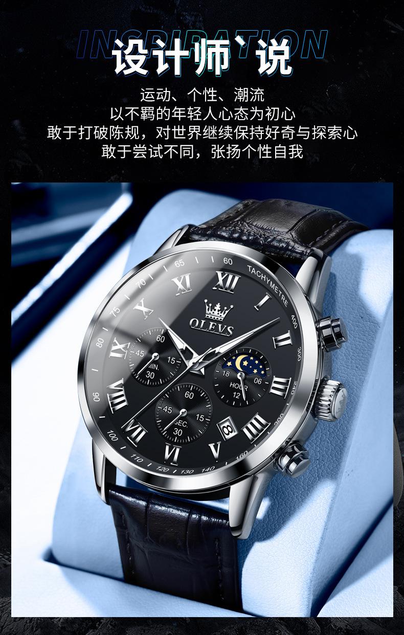 【Espessura】: 11 mm, estilo cronógrafo multifuncional com fases da lua!!